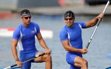 Michal Martikan receives warning about stickers on boat