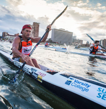 Hank McGregor and Hayley Nixon celebrate Surfski World Series titles
